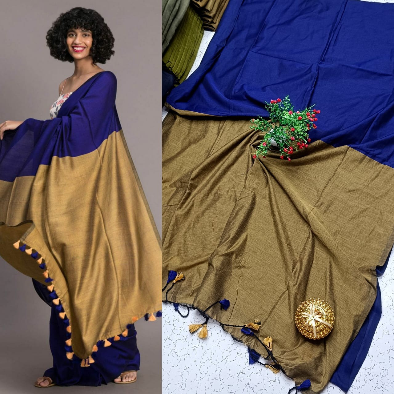 Premium quality khadi sarees with tassel
